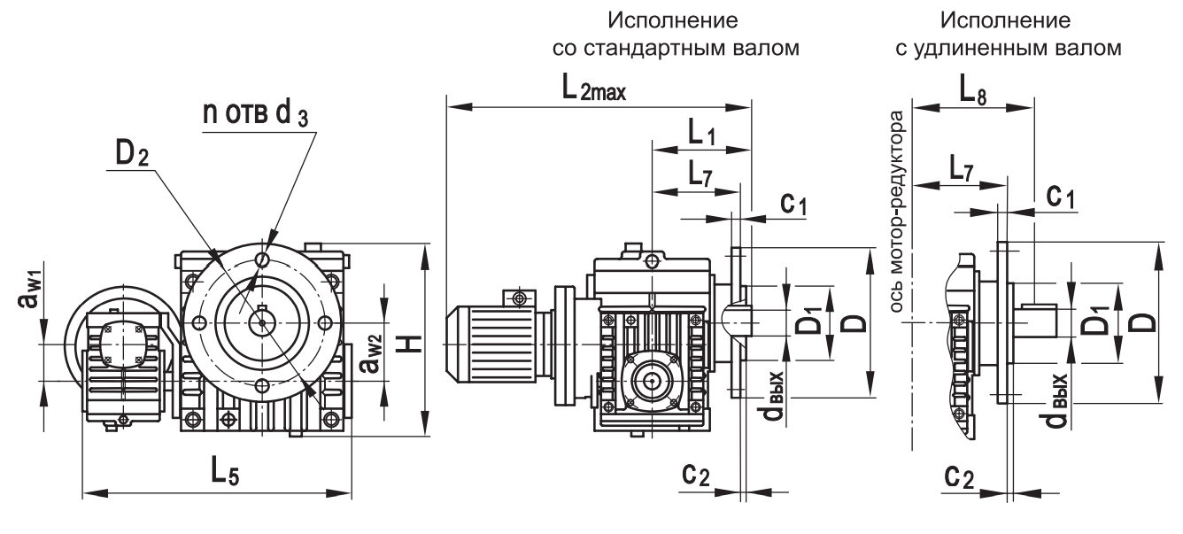 Габаритные размеры редуктора на фланце
