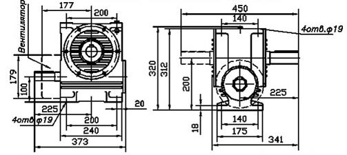 Габаритные и присоединительные размеры редуктора Ч 100