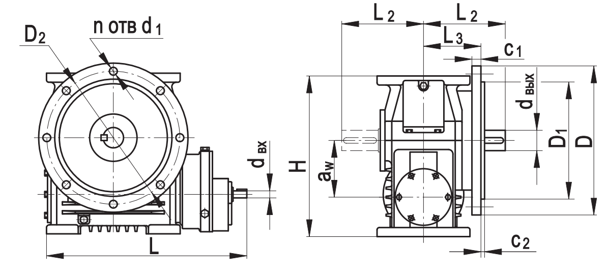 aw D D1 D2 Н L L1max L2 L3 c1 с2 d1 dвх dвых