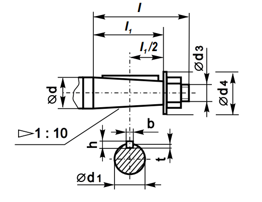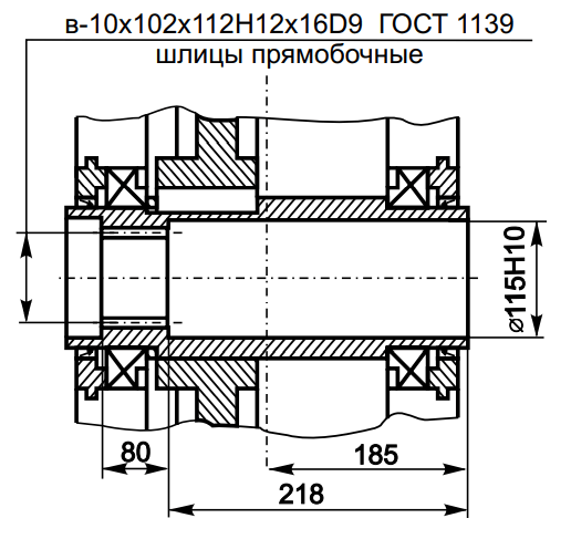 Размеры концов тихоходных валов в виде зубчатой полумуфты