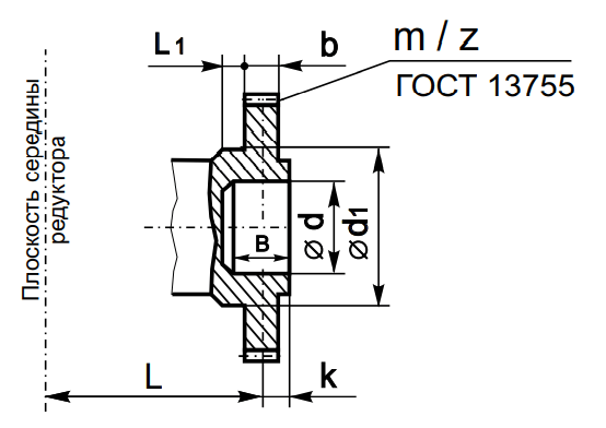 Номинальная радиальная консольная нагрузка, приложенная в середине посадочной части тихоходного вала Fт, Н