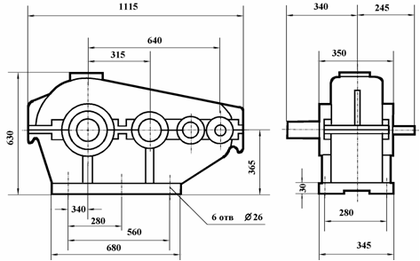 Габаритные размеры редуктора ЦТНД-315: